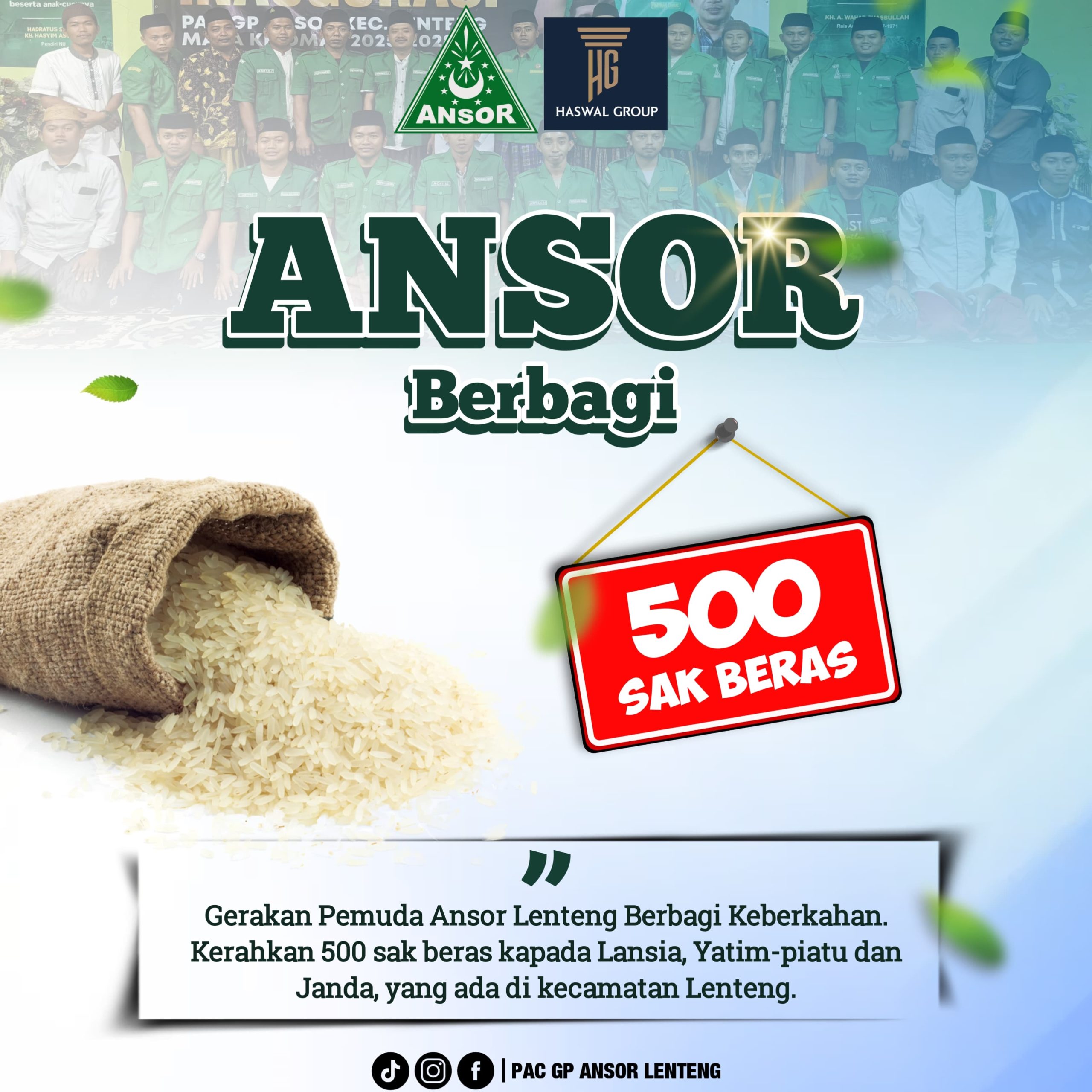 Program ini terselenggara berkat kolaborasi PAC GP Ansor Lenteng dengan Haswal Group, sebagai bentuk kepedulian dan kasih sayang terhadap masyarakat sekitar.