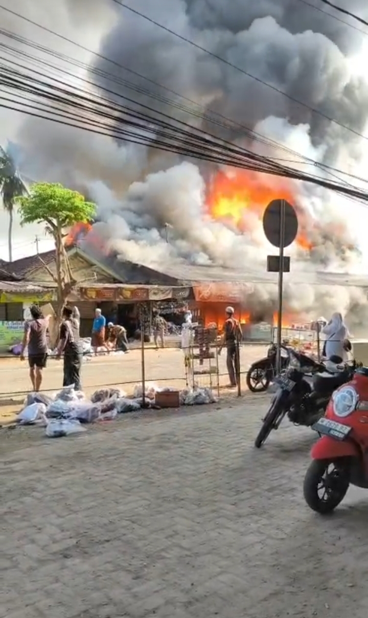 Kepulan asap hitam pekat terlihat menjulang tinggi di udara, memicu kepanikan warga sekitar. Banyak warga berhamburan ke lokasi kejadian untuk menyelamatkan barang dagangan serta membantu memadamkan api.