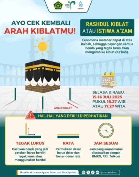 “Rashdul Kiblat bukan sekadar momen astronomis, tapi bentuk ikhtiar menjaga kesucian arah ibadah,” tegas Kemenag.