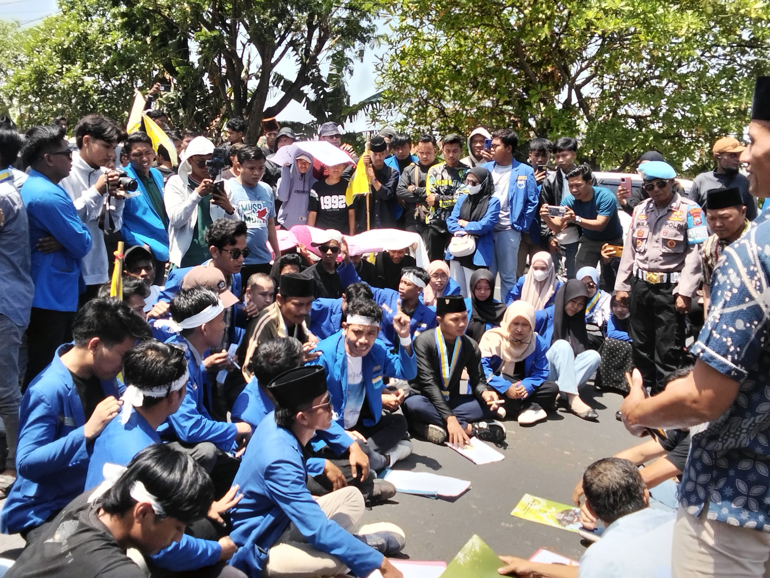 Sumenep Okaranews.id Ratusan mahasiswa yang tergabung dalam Pergerakan Mahasiswa Islam Indonesia (PMII) Cabang Sumenep menggelar aksi demonstrasi di depan kantor DPRD Sumenep. Mereka menuntut pemerintah daerah dan DPRD segera merevisi Peraturan Daerah (Perda) Nomor 6 Tahun 2012 tentang Tembakau serta Peraturan Bupati (Perbup) Nomor 30 Tahun 2024 yang dinilai tidak berpihak kepada petani tembakau.