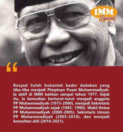 Rosyad Sholeh bukan kader dadakan. Ia aktif di IMM hingga 1977, kemudian secara bertahap mengisi berbagai posisi strategis di Pimpinan Pusat Muhammadiyah: