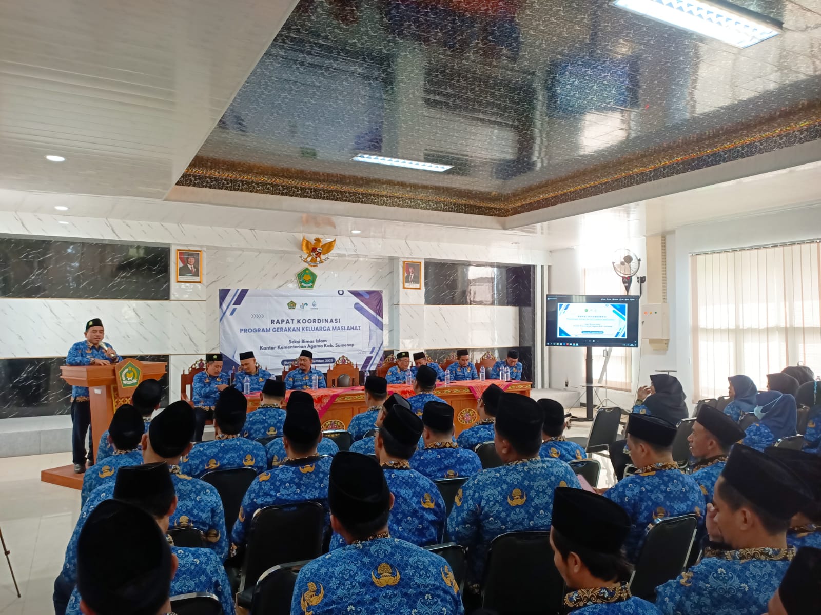 Sumenep Okaranews.id Seksi Bimbingan Masyarakat (Bimas) Islam Kantor Kementerian Agama (Kemenag) Kabupaten Sumenep menggelar Rapat Koordinasi (Rakor) Program Gerakan Keluarga Maslahat (GKM) pada Rabu (17/9). Kegiatan yang berlangsung di Aula Pelayanan Haji dan Umrah Terpadu (PLHUT) ini dibuka langsung oleh Kepala Kantor Kemenag Sumenep, Abdul Wasid.