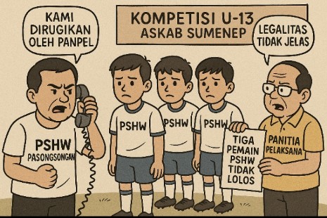 SUMENEP, OkaraNews.id – Polemik pencoretan tiga pemain PSHW Pasongsongan dalam Kompetisi Sepak Bola U-13 yang digelar Askab PSSI Sumenep terus bergulir. Klub yang berbasis di Kecamatan Pasongsongan ini mempertanyakan dasar dan mekanisme verifikasi yang dilakukan oleh panitia pelaksana (Panpel), terutama soal tuduhan “data ganda” terhadap ketiga pemain yang sebelumnya dinyatakan lolos.
